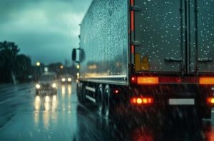 - Reducir la velocidad y aumentar la distancia de frenado: La calzada mojada disminuye la adherencia y aumenta el riesgo de pérdida de control. En vehículos pesados el riesgo es mayor debido al peso y a la inercia, por lo que reducir la velocidad es una medida básica de seguridad.